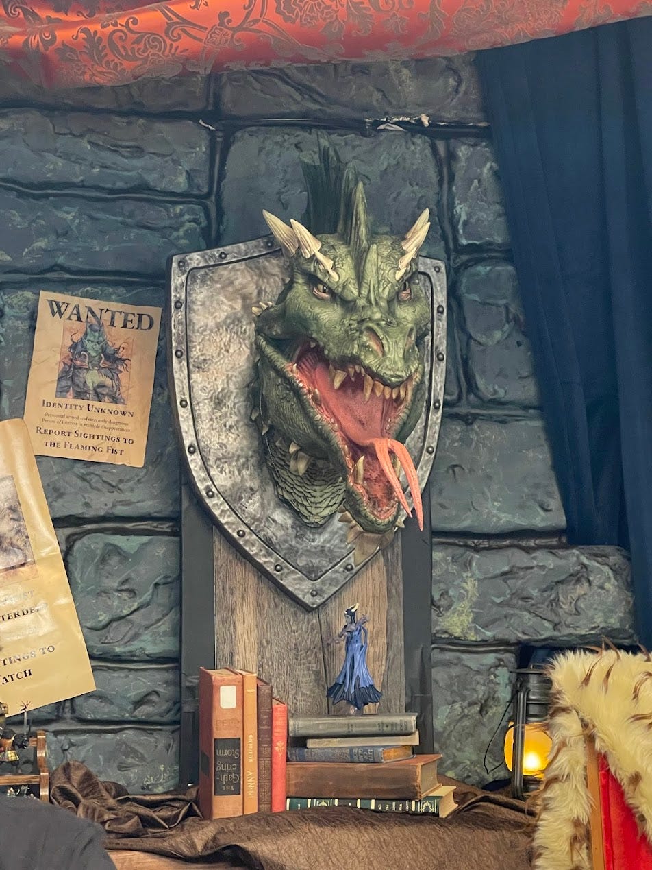 Plus, Makenzie was awesome enough to DM a game for me and some other folks, which was a true delight. I was going to get to play in one DM’d by Justice, too, but I had a scheduling conflict with another interview (Jenny Jarzabski from Paizo, which is coming and you can listen to soon!) Check out the pictures of the cool room we got to play in, though. It was definitely a highlight of Gen Con this year.